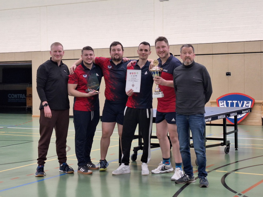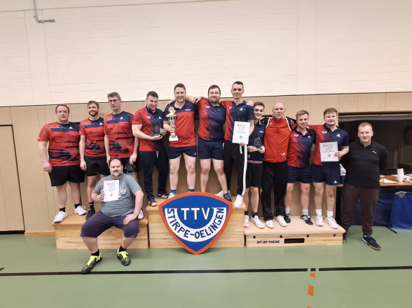 Nach einem Tunierverlauf über den ganzen Tag konnte sich am Ende im Finale unsere 1. Herrenmannschaft in einem hochspannenden Spiel gegen den TSV Venne I im entscheidenen fünften Spiel - dem Doppel - ganz knapp im fünften Satz mit 12:10 behaupten. Es wäre für beide Mannschaften verdient gewesen, aber wir freuen uns natürlich riesig, dass es der TTV am Ende geschafft hat. ?