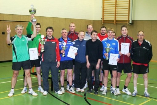Es nahmen Mannschaften aus Bohmte, Hitzhausen, Lintorf, Venne, Wimmer und natürlich auch aus Stirpe-Oelingen teil. Über den Spielverlauf werden wir im nächsten Bericht ausführlicher informieren. Bereits die Spiele in den vier zusammengelosten Gruppen waren teilweise sehr spannend und dieses Niveau hielt sich auch in der KO-Runde weiter. In den beiden Halbfinalspielen standen sich jeweils die Mannschaften des TSV Venne und des TTV Stirpe-Oelingen vereinsintern gegenüber. Somit spielte TSV Venne I gegen TSV Venne II, im anderen Halbfinalspiel standen sich TTV I und TTV II gegenüber. Das Spiel um Platz drei wurde dann vom TSV Venne II gegen TTV Stirpe-Oelingen II mit 3:1 gewonnen. Im sehr spannenden Endspiel standen sich der TSV Venne I und der TTV Stirpe-Oelingen I gegenüber. Hier bekam der TTV I bei jedem Satz 5 Punkte Vorgabe, da der TSV Venne I in der Landesliga Weser-Ems spielt. Trotz dieser hohen Vorgabe gelang es dem TSV im letzten Doppel das Spiel für sich zu entscheiden. Den Zuschauern wurde ein packendes Endspiel mit vielen interessanten Ballwechseln geboten. Trotz der hohen Punktvorgabe an sämtliche andere Mannschaften konnte der TSV Venne I sich den Wanderpokal des 26. Altkreisvorgabepokalturniers sichern. Wir gratulieren dem verdienten Sieger TSV Venne I und freuen uns bereits auf die nächste Ausspielung im Jahr 2014 in Venne!