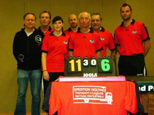 Zu Anfang Dezember 2012 hat unsere 3. Herrenmannschaft neue Trikots erhalten. Möglich ist dies durch das Sponsoring der Spedition Nolting aus Bad Essen geworden. Der TTV möchte sich auf diesem Wege für die tolle Unterstützung von Herrn Martin Nolting und seiner Frau bedanken. Das erste Spiel mit den neuen Trikots konnte am 3. Dezember letzten Jahres gegen den TSV Westerhausen-Föckinghausen absolviert werden. Durch die Anwesenheit von Martin Nolting und seiner Frau wurde der TTV gut unterstützt und konnte somit mit den von der Spedition Nolting gesponserten Trikots direkt das erste Spiel gewinnen. Bisher wurde im neuen Trikot kein Spiel verloren und wir hoffen, dass dies so weitergeht. Nun kann sich unsere dritte Mannschaft mit den neuen Trikots wieder voll in die Rückrunde der 1. Kreisklasse Herren Ost stürzen und hoffentlich weiterhin erfolgreich punkten.