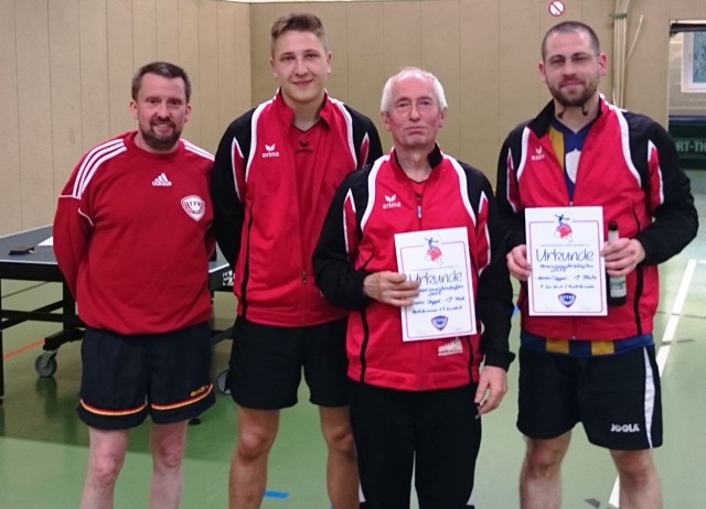 Vereinsvorsitzender Frank Kolchmeyer, 1. Sportwart Frederic Böss, Doppelvereinsmeister 2015 Lothar Kalkbrenner und Thomas Gaideck